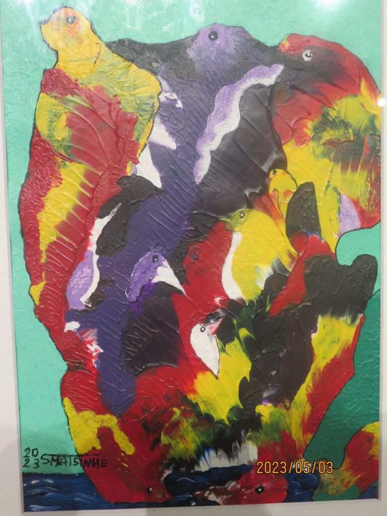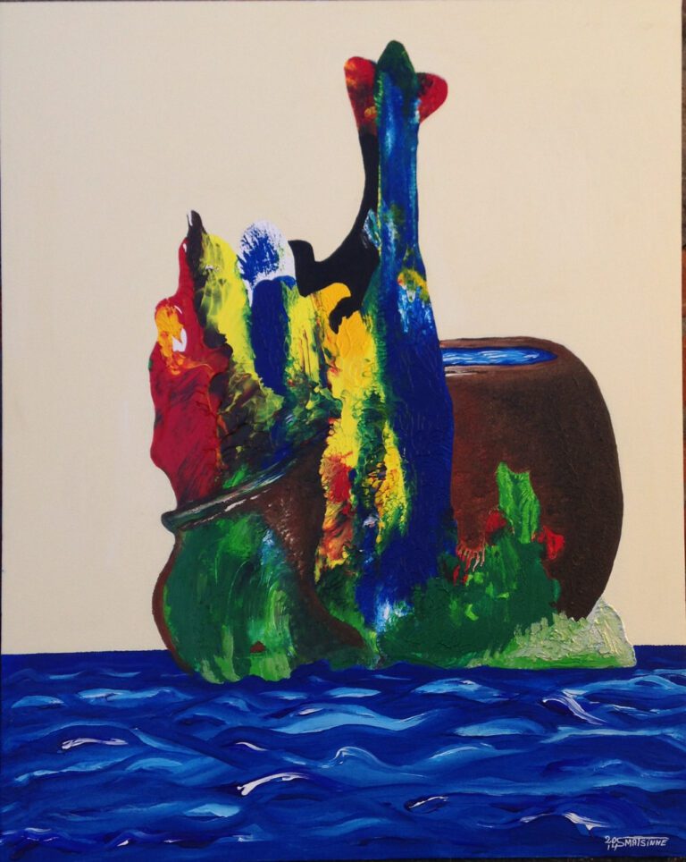 Trabalhos de Arte Uma coleção de pinturas e composições visuais que refletem o percurso, a pesquisa e a visão cultural de Sebastião Matsinhe. Obra #1 Descrição 1